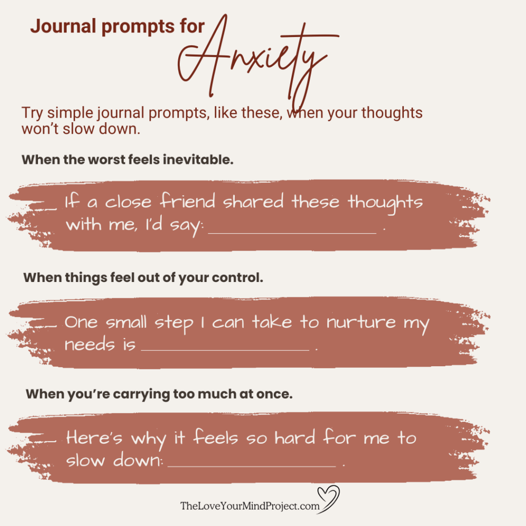 Perfectionism can often hide behind anxiety and a fear of not being enough.4 These prompts help you practice radical self-compassion.